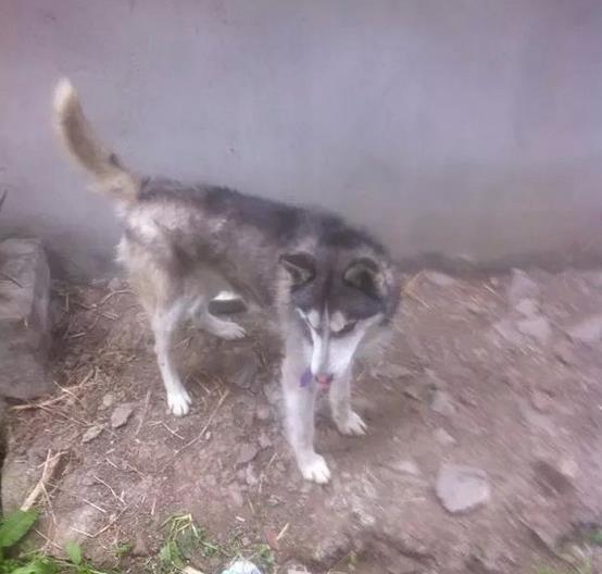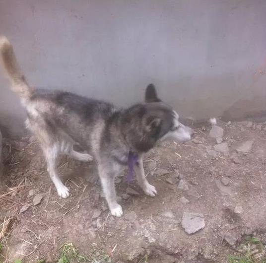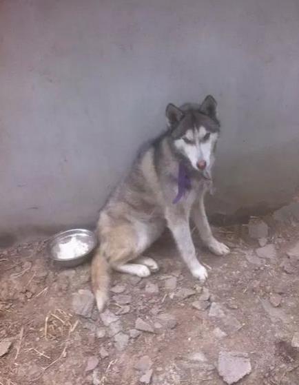 這隻哈士奇已經瘦得不成模樣,雖然我們餵了它東西吃,又逗它玩,但它只是的樣子還是非常難過,主人出去那麼多天,一定是以為被主人拋棄了。